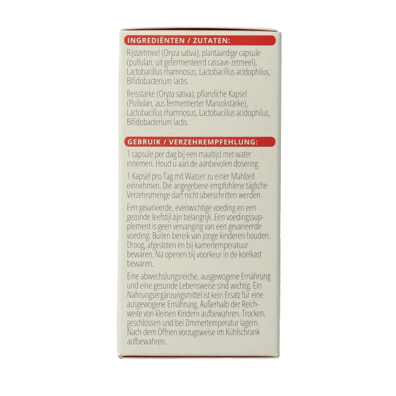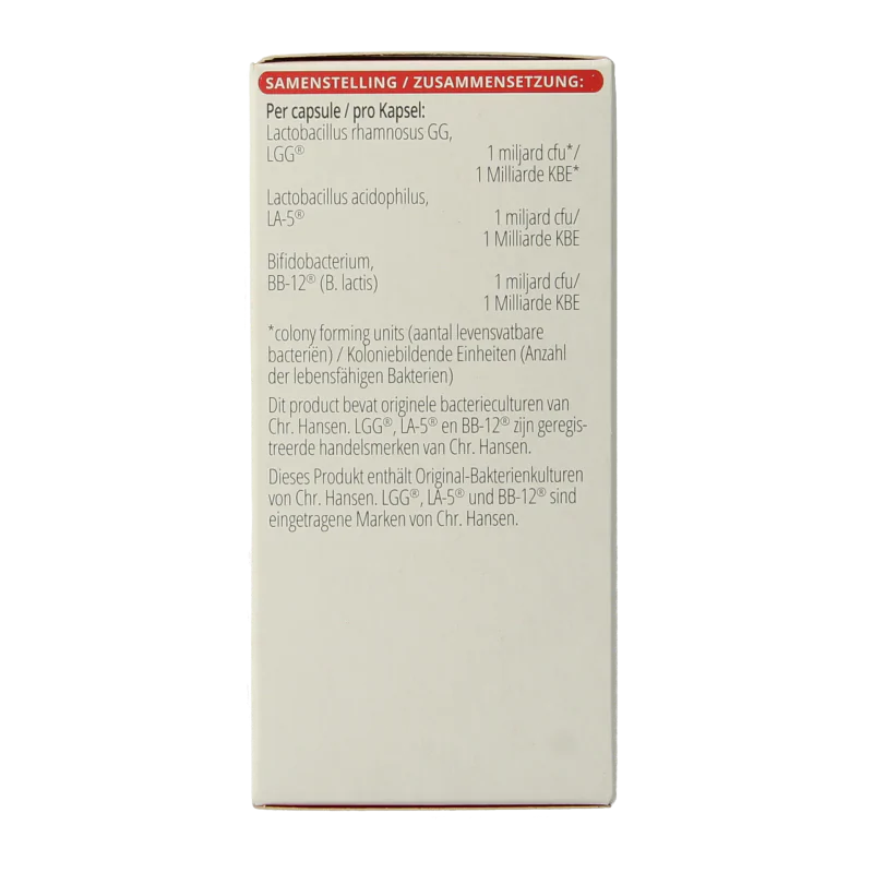 Dit product bevat originele bacterieculturen van Chr. Hansen. LGG®, LA-5® en BB-12® zijn geregistreerde handelsmerken van Chr. Hansen.